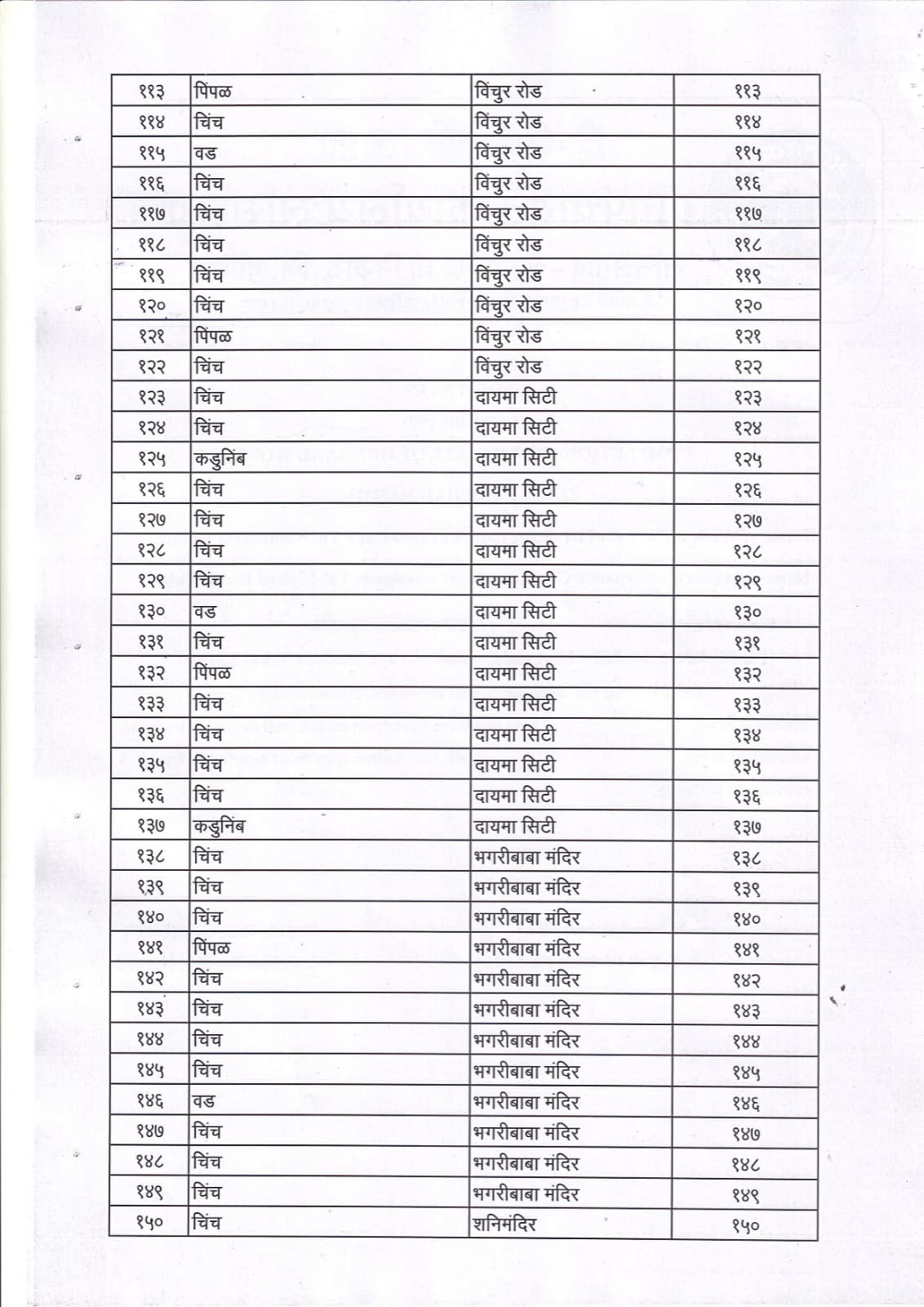 वृक्ष गणना नोंद व प्रसिद्ध यादी - 3