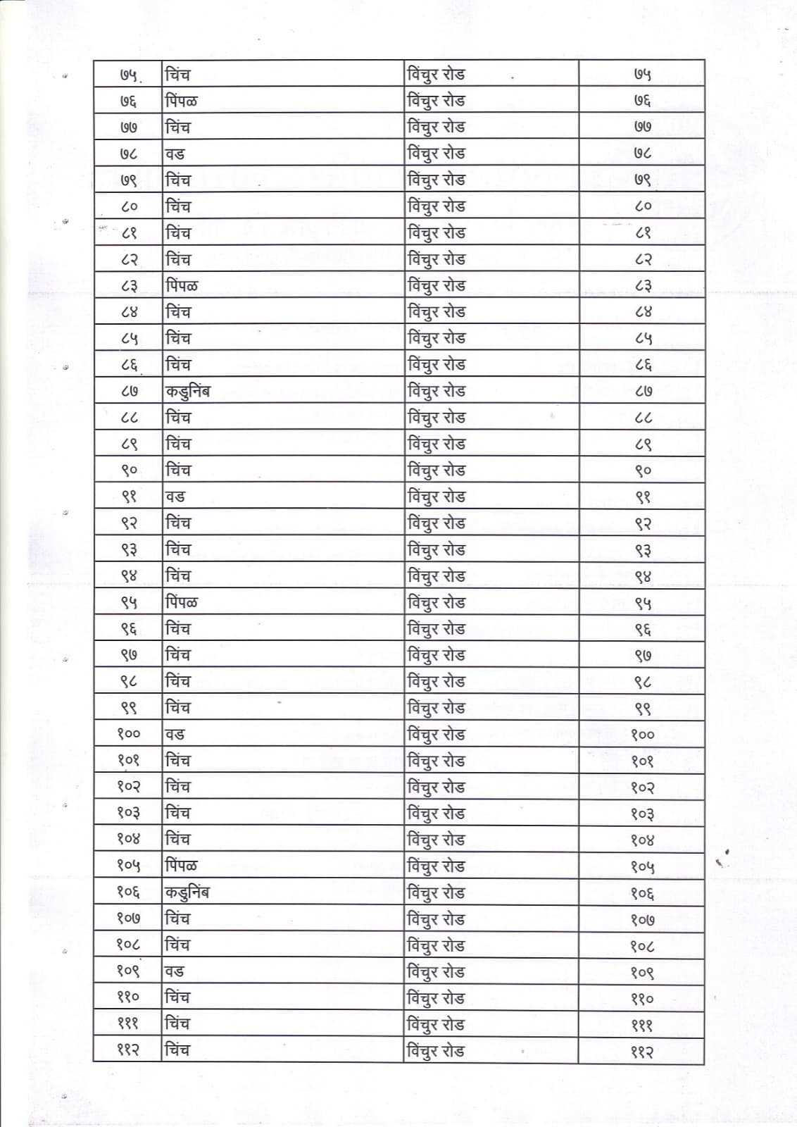 वृक्ष गणना नोंद व प्रसिद्ध यादी - 7