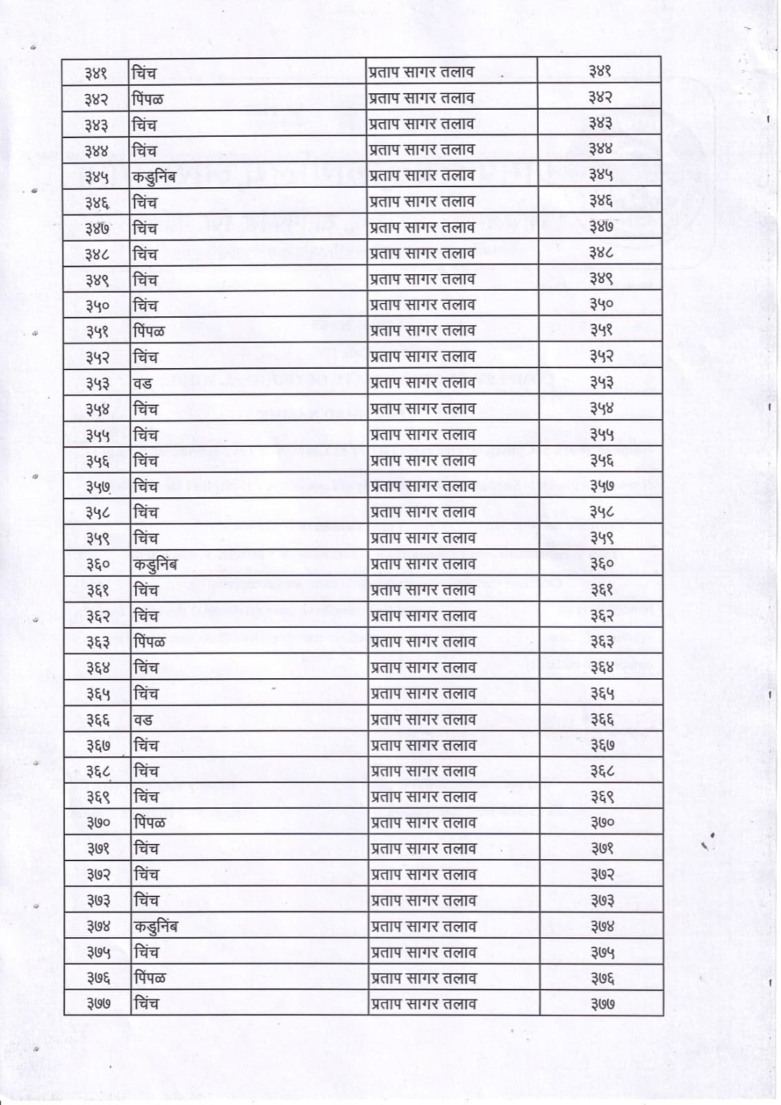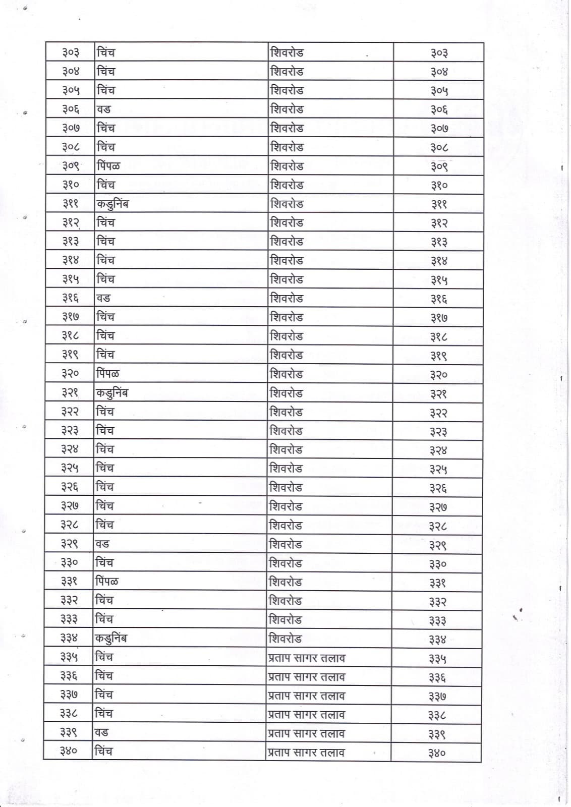 वृक्ष गणना नोंद व प्रसिद्ध यादी - 3